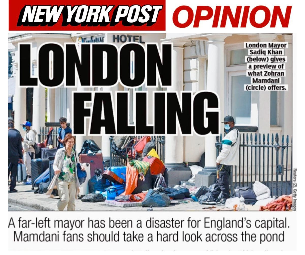 Many of my friends and former neighbors in New York — where I lived for 27 years — are anxious about the city’s future if it elects as mayor a self-proclaimed Muslim socialist. Another great world capital already offers a glimpse of what might lie ahead: London, under its far-left mayor, Sadiq Khan.